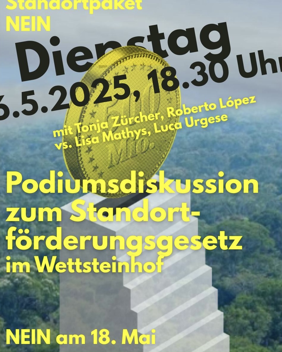 Podiumsdiskussion zur Teilrevision des Standortförderungsgesetzes. Der Anlass wird von Bajour-Chefredaktorin Ina Bullwinkel moderiert. Tonja Zürcher und Roberto López werden das Referendum vertreten, während Lisa Mathys und Luca Urgese das Standortförderungsgesetz vertreten werden. Es wird vor Ort einen Apéro geben.